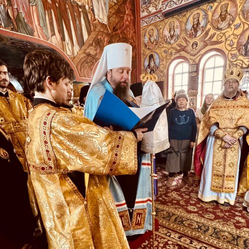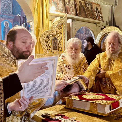 В положенное время за Божественной литургией была совершена архиерейская хиротония архимандрита Спиридона (Гусакова).
