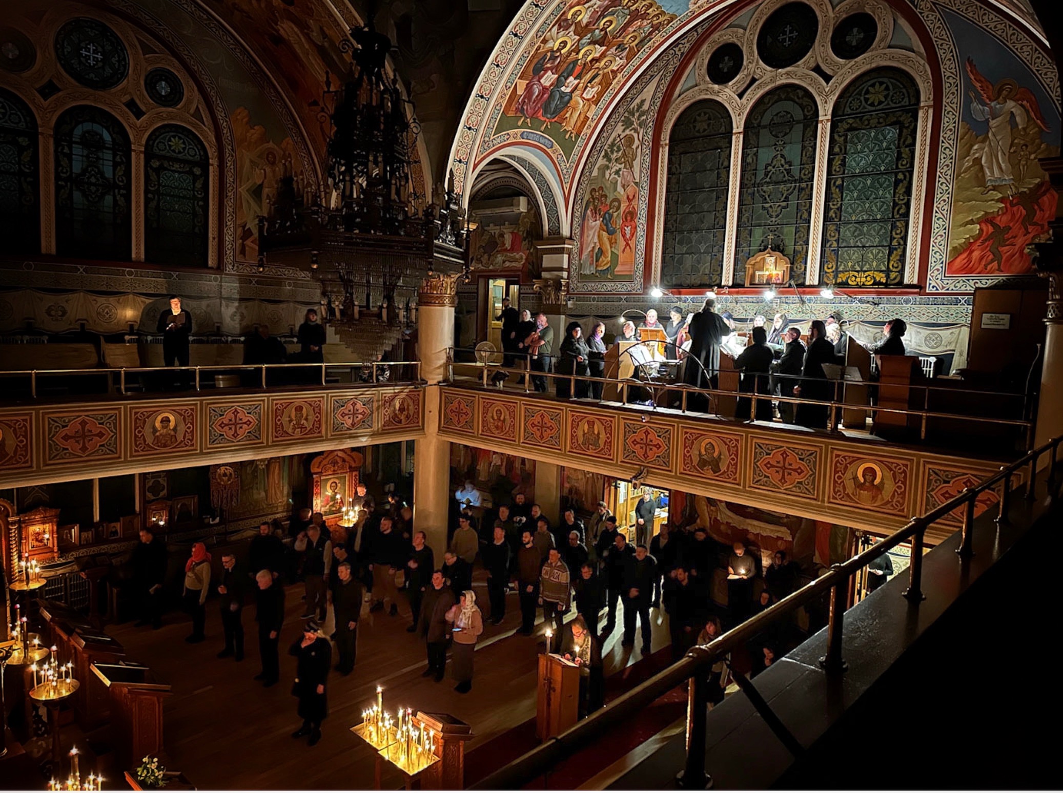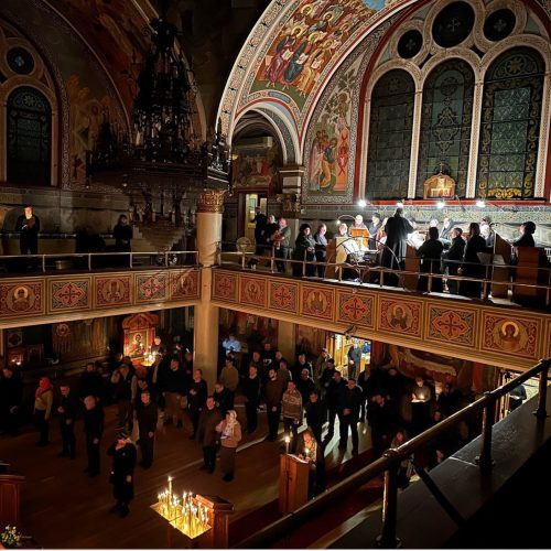 Прихожане и клир Собора Святой Троицы в Торонто молитвенно вступили в дни Святой Четыредесятницы, по доброй традиции собираясь на продолжительные великопостные будничные богослужения.Особенно благоговейно проходят вечерние службы с чтением Великого Покаянного канона святого Андрея Критского. Несмотря на большое число молящихся, в храме сохранялись тишина и сосредоточенность: верующие с глубоким вниманием вслушивались в проникновенные слова канона, который читал благочинный Восточно-Канадского округа митрофорный протоиерей Владимир Мальченко.Замечательный соборный хор под управлением регента Александра Пущина помогал молящимся глубже пережить покаянный настрой первых дней поста. Стройное и молитвенное исполнение великопостных песнопений создавало особую духовную атмосферу, располагающую к внутреннему сосредоточению и молитве.К началу поста приход подошёл с ощутимыми трудами и заботой о благолепии храма. Накануне была завершена масштабная реставрация пола: ветхий паркет полностью заменён на новый высококачественный настил из канадского дуба. Продолжаются работы по капитальному укреплению фундамента под ступенями главного входа, а также реставрация иконописных фресок, что придаёт внутреннему убранству собора обновлённый и благолепный вид.Радостным событием для прихода стало и начало репетиций вновь созданного детского хора под управлением Александры Сидоровой. Юные певчие не только готовятся к участию в праздничных богослужениях и приходских мероприятиях, но и систематически изучают основы церковного пения, приобщаясь к живой традиции православного богослужебного наследия.Вступая в дни Великого поста, духовенство и прихожане собора с надеждой и упованием на милость Божию продолжают путь покаяния, молитвы и обновления, соединяя внутренний труд души с заботой о доме Божием и воспитанием подрастающего поколения в вере и церковной культуре. -